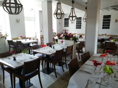 In einer familiären Atmosphäre wird Ihnen der Chefkoch Mathieu GUILLON eine Küche vorstellen, die Geselligkeit, ideale Aromen und bei Bedarf Schnelligkeit für Ihr Mittagessen mit dem Tagesmenü vereint.